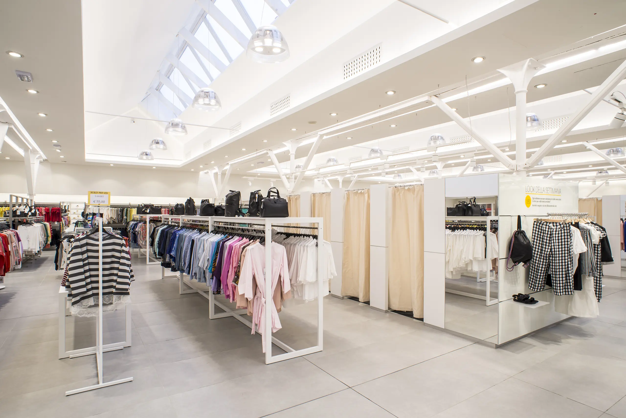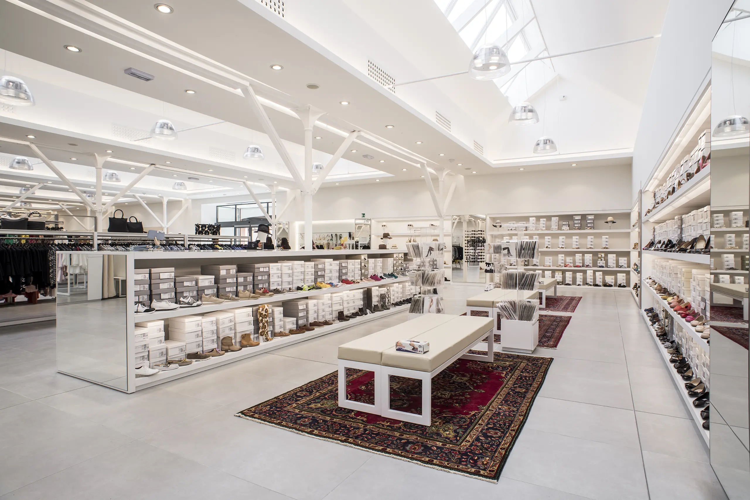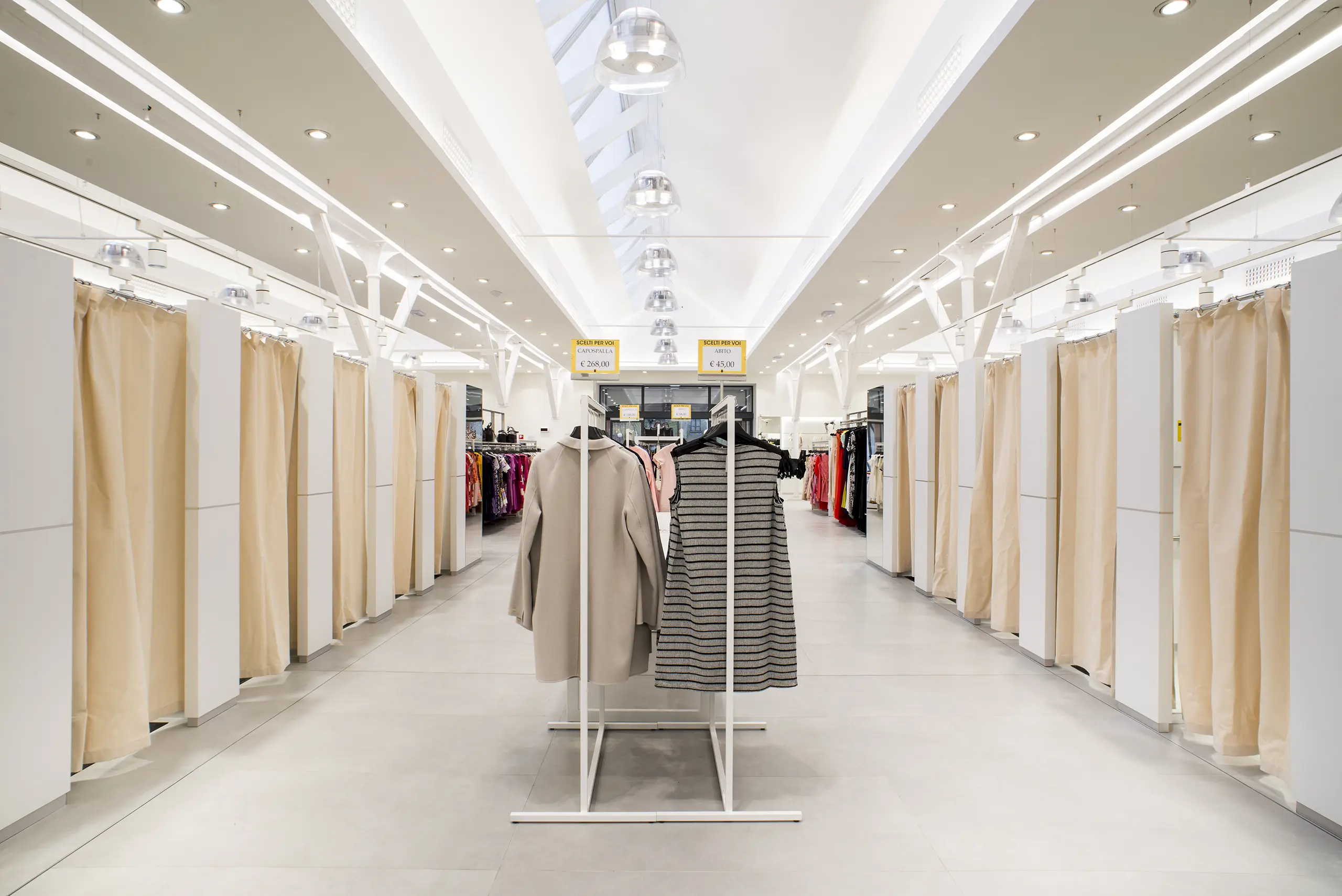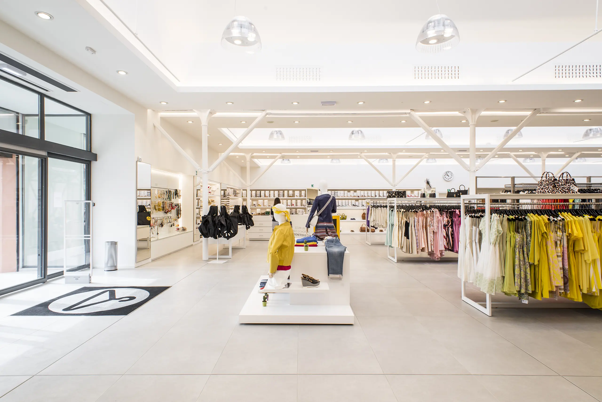 L’ampliamento e la riorganizzazione del punto vendita di Diffusione Tessile a Collegno (Torino), situato all’interno del complesso LEUMANN, pone grande attenzione al prezioso contesto storico in cui è inserito: vero e proprio esperimento sociale e urbanistico della fine dell’Ottocento, il Villaggio Operaio Leumann è il frutto dell’opinione illuminata del XIX secolo, per cui le cose utili potevano/dovevano essere necessariamente belle. Il complesso, realizzato tra il 1875 e il 1907 in stile Liberty dall’ingegner Pietro Fenoglio su commissione dell’imprenditore svizzero Carlo Giovanni Napoleone Leumann, costituito da due comprensori residenziali e dall’ex stabilimento tessile, è divenuto oggetto di tutela da parte della Soprintendenza per i Beni artistici e Culturali. L’intervento in questione si inserisce quindi all’interno di un progetto più ampio di recupero, caratterizzato da specifiche opere di restauro degli edifici costituenti il nucleo originario del Cotonificio Leumann, oltre che da un recupero a livello urbanistico dell’intera area nel suo complesso. La necessità di aumentare lo spazio di vendita del preesistente negozio Diffusione Tessile ha comportato ad una riorganizzazione completa del blocco “N”, risalente all’anno 1875. La ristrutturazione ha previsto la riorganizzazione del layout del negozio, ottimizzandone sia gli spazi espositivi che quelli logistici e adattando le finiture ad una immagine più aggiornata dell’azienda, mantenendo però visibili gli elementi strutturali originali: gli antichi pilastri in ghisa, le travi in legno della copertura e porzioni di pavimenti decorativi sono stati preservati. Le scansioni dei serramenti sui fronti principali sono state rimodulate, accorpando più finestre per realizzare vetrine più ampie, in modo da uniformare i fronti del fabbricato.